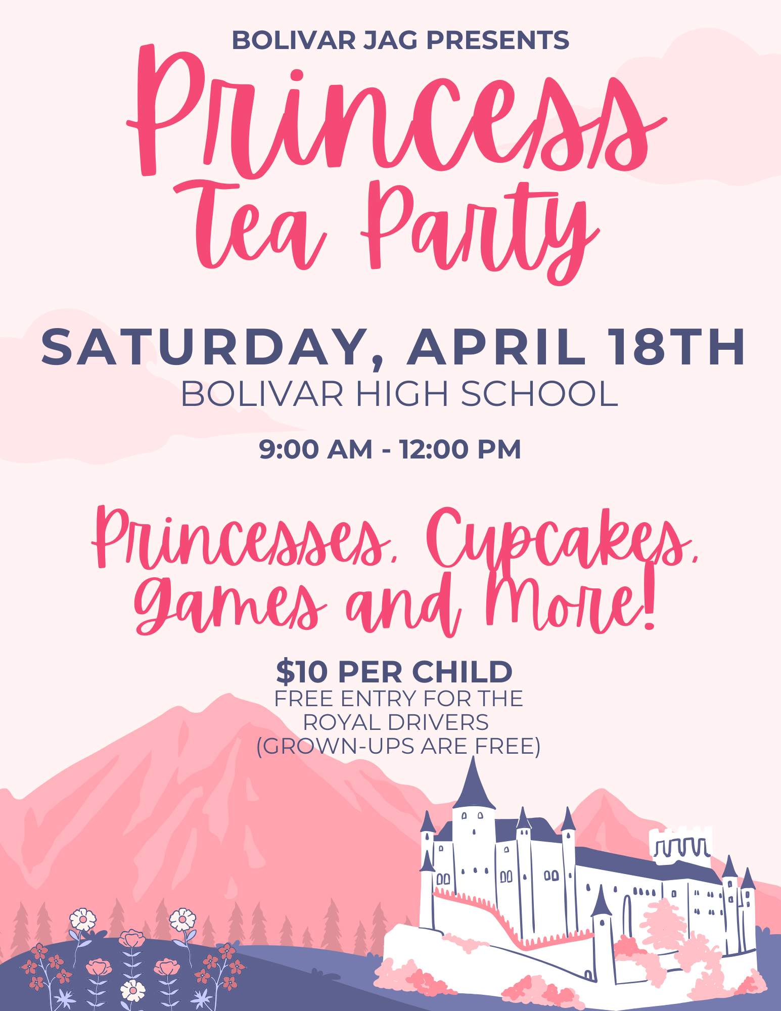 The BHS JAG program cordially invites all the little princesses and princes in our community to a morning of magic and wonder at our Princess Tea Party! 👑☕